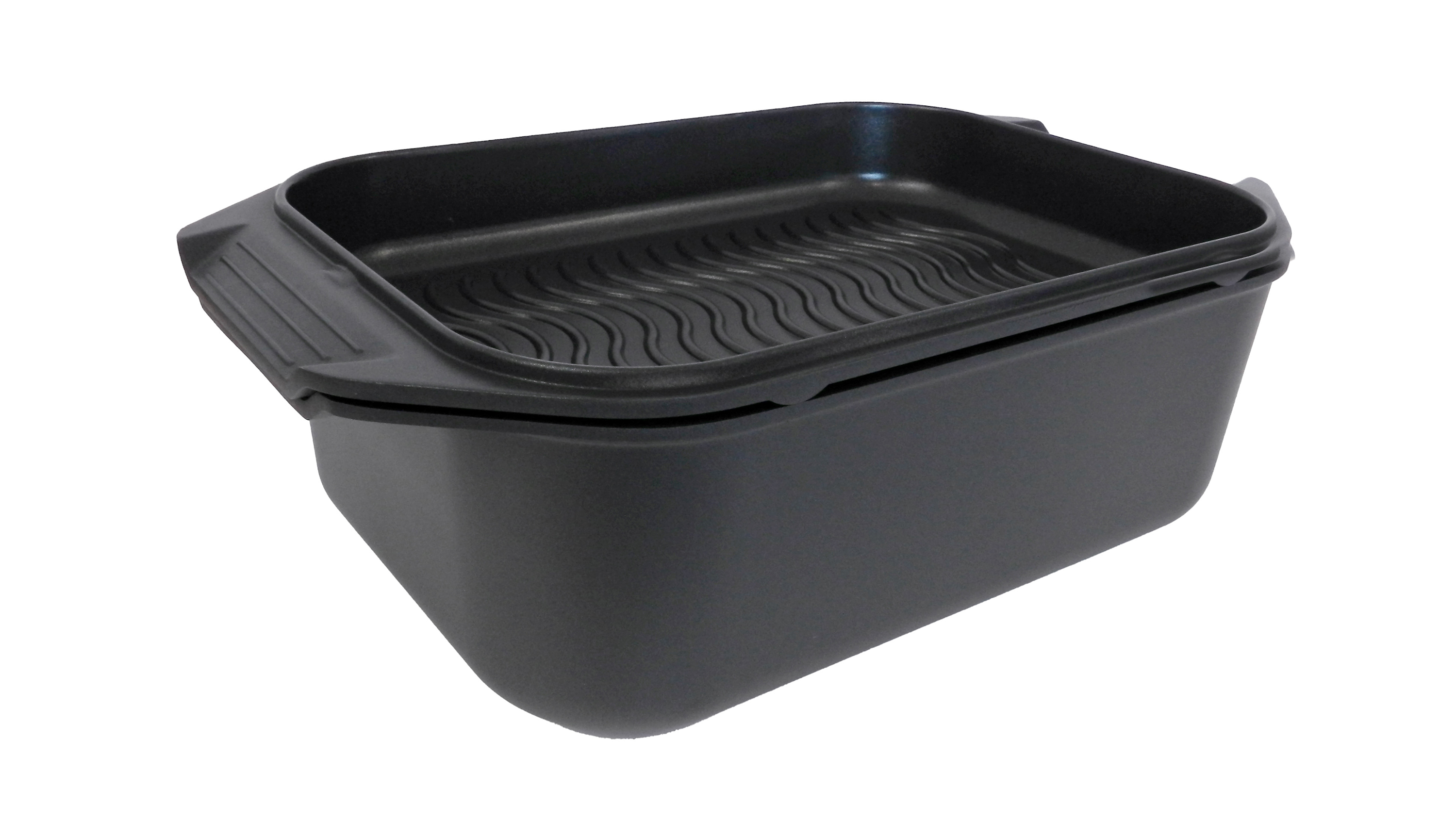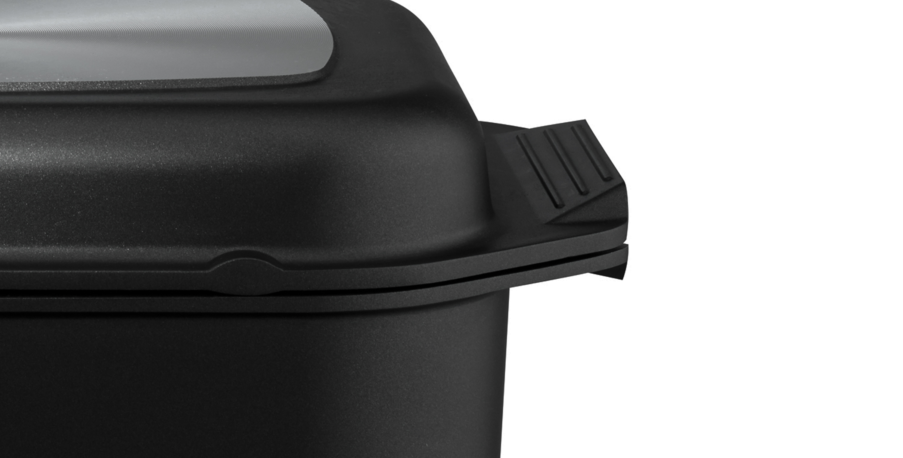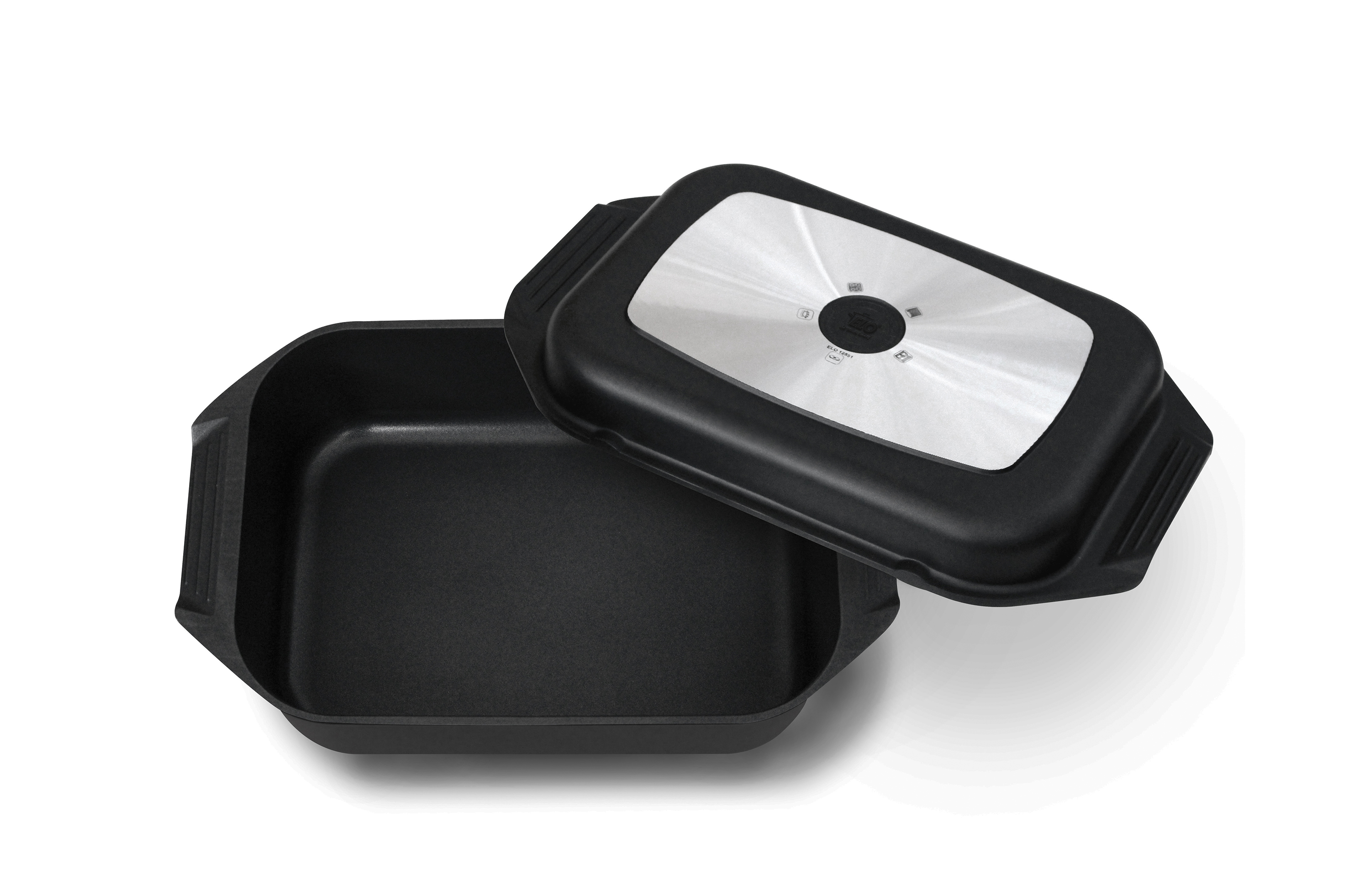Wenn einer alles kann! Karree ist Raumwunder, Bräter, Grillpfanne. Und auch gerne alles gleichzeitig. Ein XXL-Multitasking-Talent eben. Der Deckel des Karree-Bräters kann auch als Grillpfanne verwendet werden, dank des eingearbeiteten Grillboden. Fleisch oder mariniertes Gemüse liegen nur auf dem Grillprofil des Bräters auf. An diesen Stellen konzentriert sich die Hitze und bildet das typische Streifenmuster auf dem Bratgut. Der Bräter ist für alle Herdarten geeignet, außer für Induktion mit einer gleichmäßigen Wärmeverteilung Boden bis zum Rand.