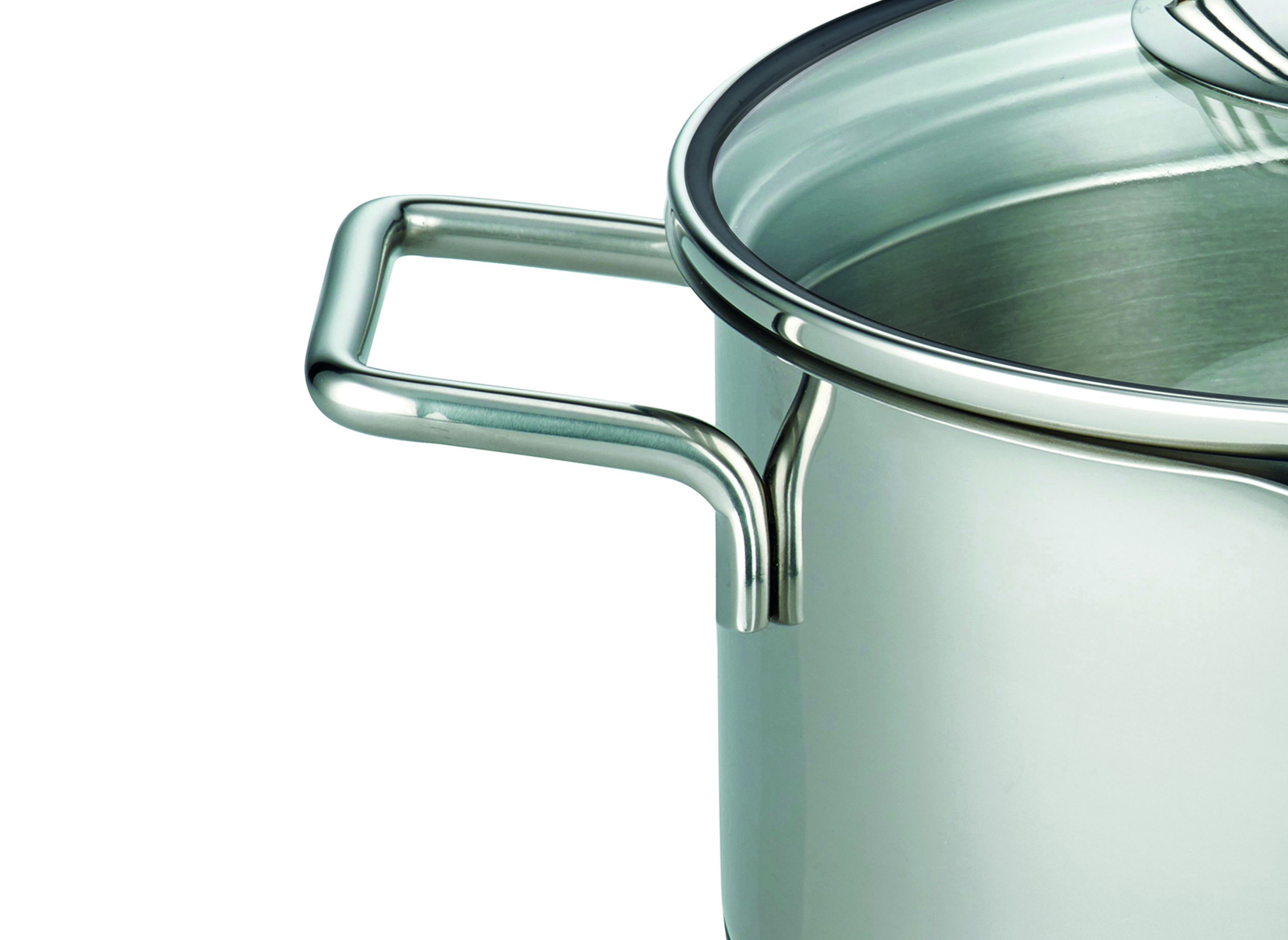 - Ausbuchtung im Topfrand leiten den Dampf seitlich ab Edelstahlbügelgriffe