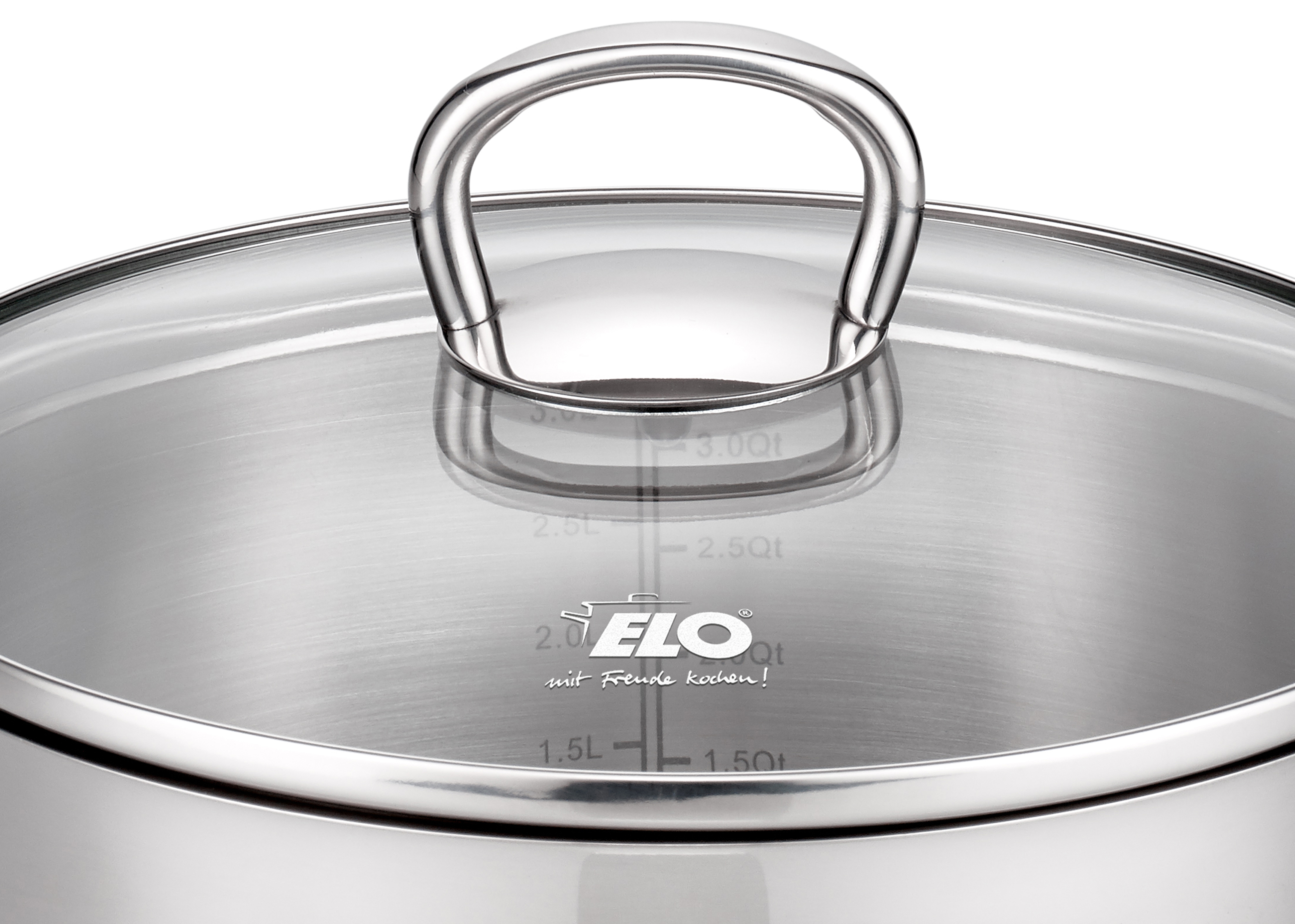 • geschweißt Glasdeckel mit stoßfestem Edelstahlrand, weißem ELO Logo